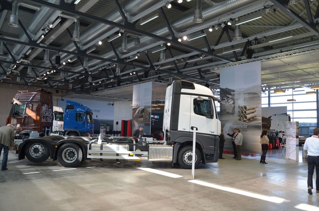 Insgesamt 10 LKW mit Aufbauten mit den unterschiedlichen Wechselsystemen wie den mechanischen Aufbauten: Adapter-, Volumen– und XXL-Volumensystemen sowie den pneumatischen Aufbauten: AIRLIFTER und Hubschwingensystemen. Fast alle wurden auf dem neuen ACTROS vorgeführt. Großes Interesse fand auch unser hydraulisch betriebenes Umsetzfahrzeug, aufgebaut auf dem AXOR. Die hierin verbaute neue pneumatische Schnellverriegelung von MOTOC wird erstmals mit Strassenzulassung angeboten. Ebenso wurden unsere Anhängersysteme vorgestellt.