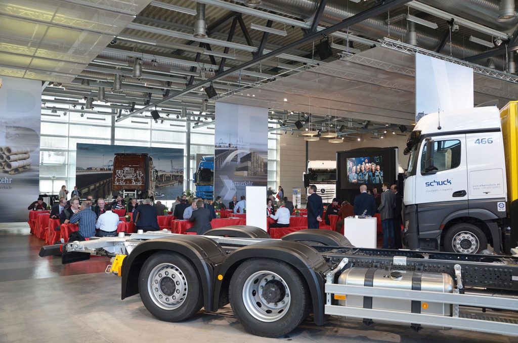 Bei frühlingshaftem Wetter kamen unser patentiertes pneumatisches Wechselsystem AIRLIFTER und ein Umsetzfahrzeug, jeweils im Freigelände, zum Einsatz. Hierzu konnte sich das fachkundige Publikum von unserem geschulten Fachpersonal alles genauestens vorführen lassen. Und so manche Gäste ließen es sich nicht nehmen, sofern sie eine Fahrerkarte dabei hatten, eine Testfahrt mit dem neuen ACTROS zu absolvieren oder entspannt eine Werksführung zu unternehmen.