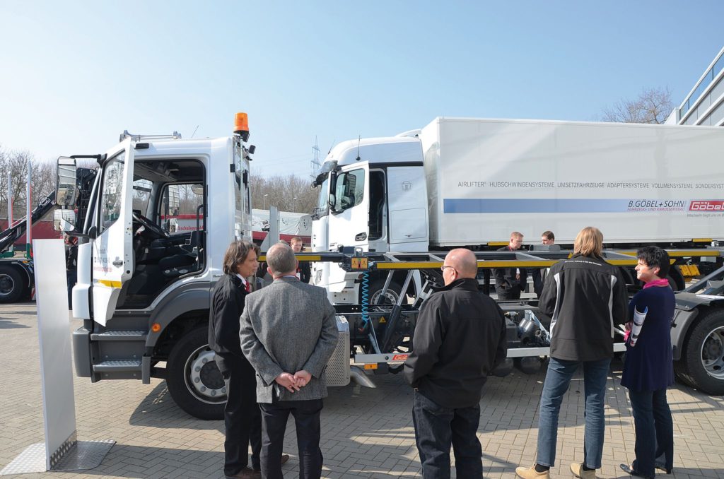Am 14. und 15. März 2012 präsentierten wir und das Branchen-Informations-Center von Mercedes-Benz, unseren Gästen das umfangreiche Wechselsystemsortiment der B. Göbel + Sohn GmbH. Als neuer Generalunternehmer und Aufbauhersteller für Wechselsysteme von Mercedes-Benz wurde diese Veranstaltung zu einer Art offiziellen Einweihungsfeier. Mit unserem Gastgeber Herrn Horst Schaub, Leiter vom BIC sowie Herrn Ralf Göbel und Herrn Norbert Ewel, jeweils von B. Göbel+Sohn GmbH (Abb. rechts), wurde erstmalig eine rundum gelungene Informationsveranstaltung geboten.